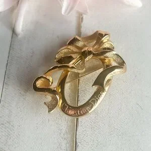 Christian Dior brooch with a gold ribbon bow design. I had this Dior brooch authenticated through the “Legit App” and certificate was issued. The brooch is marked at the back with “Chr.Dior©️”. There are no visible signs of wear and based on similar researched designs I believe this brooch is from 1980’s.