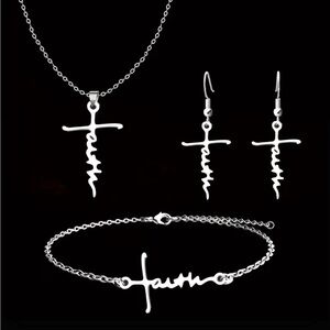 Faith Stainless Steel 3pc Set With Necklace, Earrings, And Bracelet RESTOCKED
