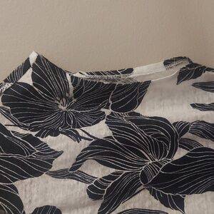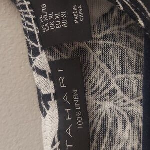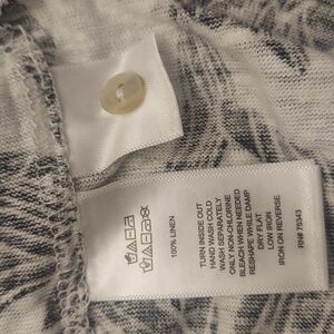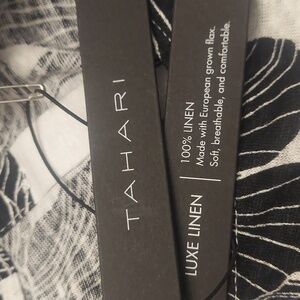 NWT TAHARI 100% Luxe Linen Black And White Floral Back Button Down Pullover Top
