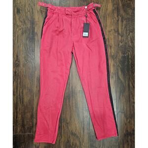 One Teaspoon Red Envy Tuxedo Taylor pants in size 26, brand new with tags! These stylish pants feature a vibrant red color with a sleek black stripe down the sides, adding a touch of sporty chic. The adjustable waist ensures a comfortable and customized fit. Perfect for adding a pop of color and edgy style to your wardrobe!