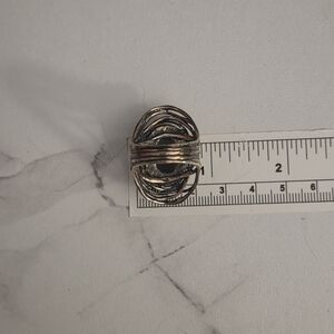 Sterling silver ring with a bold stone that has blue, green and grey hues depending on the lighting. Size 9