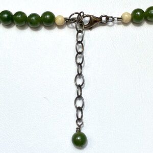 This exquisite and reversible necklace features a harmonious blend of deep green jade beads creating a captivating visual appeal.