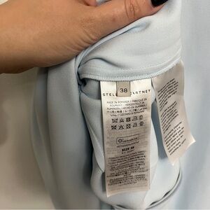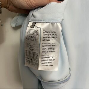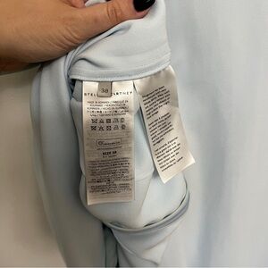 Consciously crafted with 66% forest-friendly viscose, this ice blue cape dress reinterprets archival styles to present a Stella Iconic. Precise tailoring and sculptural cape sleeves lend an ageless femininity to Autumn 2023.