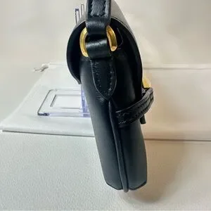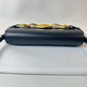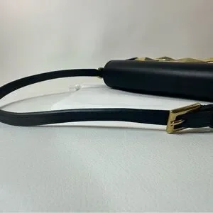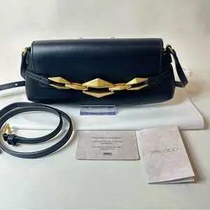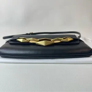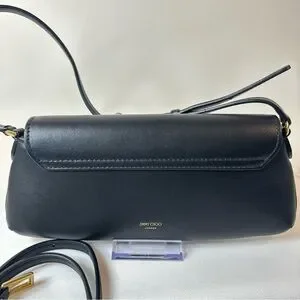 NEW JIMMY CHOO EAST WEST LEATHER SHOULDER BAG BLACK GOLD