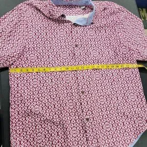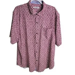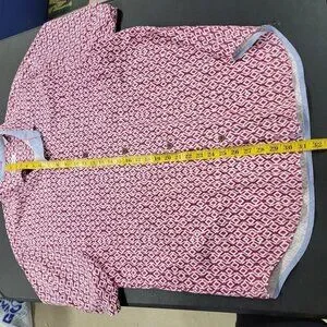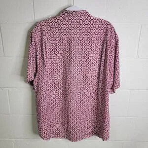 Tommy Bahama XL Button Front Red Geometric Print Silk Shirt Tropical Vacation see photos for measurements used condition