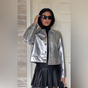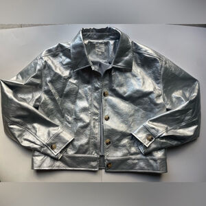 NIA “Venus Jacket” – Metallic Silver Faux Leather Jacket – Size Medium