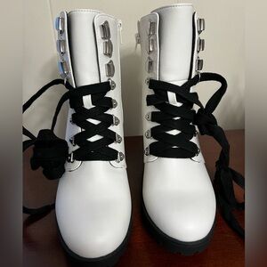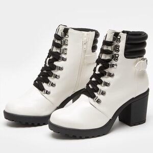 MIA Annamaria Womens Heeled combat style Boots white w/ black sole & trim NWOT