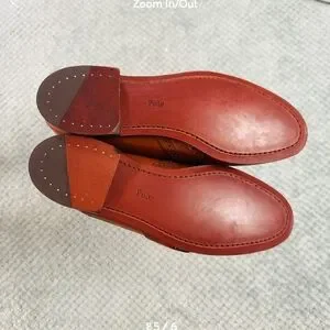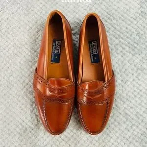 Elegant tan loafers by Polo Ralph Lauren. Perfect for casual or formal wear. Sleek design with classic appeal.