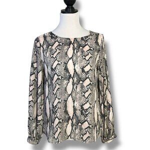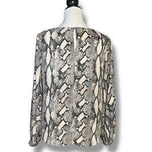 Worthington Blouse Snake Print Top Balloon Puffy Long Sleeve Animal Print Round Neck Black Gray Blush Pink Women XS