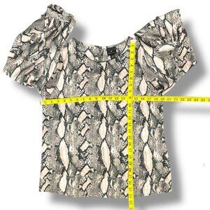 Worthington Women's Snake Print Blouse Ballon Sleeve Black Pink Blush Top XS