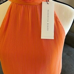 This stunning luxury designer gown by Veronica Beard features a vibrant orange hue that radiates sophistication and confidence.