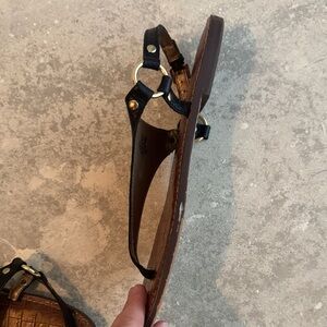 Chic black leather sandals with brown textured sole. Ideal for casual wear. Great condition with scuffs as shown.