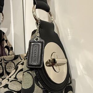 Coach Black and Tan Hobo Bag slouchy purse signature c designer handbag