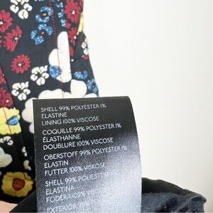 Size 6. Shell: 99% polyester, 1% elastane. Lining: 100% viscose. Gently preowned.