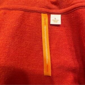 Bright orange hooded cardigan with a unique design. Ideal for a bold fashion statement.
