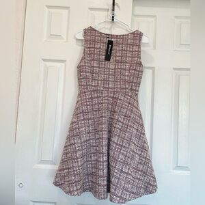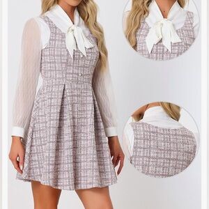 Allegra K Tweed Dress for Women's Pinafore Overall Sleeveless A-Line Plaid Tank Dresses, Pink