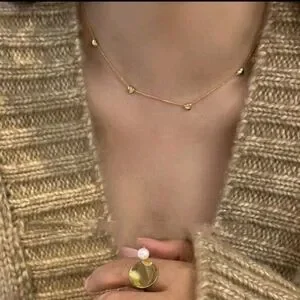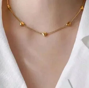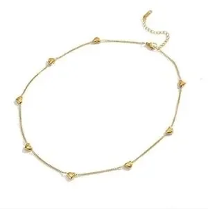 NEW! 18K Gold Plated Minimalist Simple Petite Hearts Station Chain Necklace