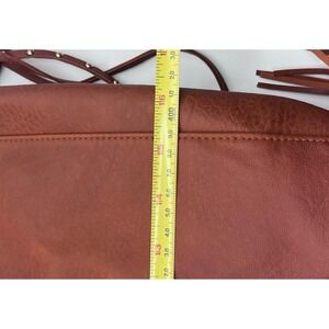 Add a stylish boho touch to your look with this Big Buddha large hobo bag in a rich brown/maroon faux leather. Features braided accents, fringe tassels, gold hardware, and a wide comfortable shoulder strap. Spacious interior with a colorful patterned lining.