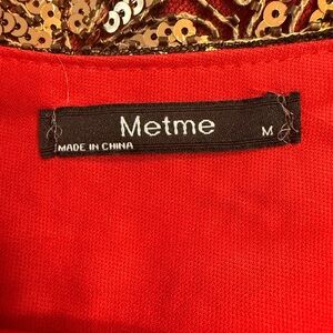 Step into elegance with this stunning red and gold beaded dress. Perfect for special occasions, this dress features intricate beadwork and a flattering silhouette. Make a statement with its bold colors and exquisite design.