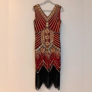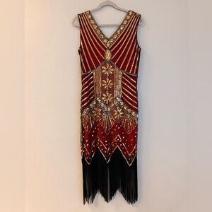 Elegant Wine and Gold Beaded Flapper Dress