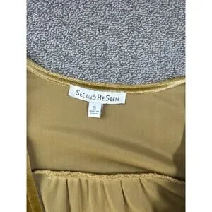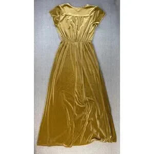See and Be Seen Velvet Dress Maxi Short Sleeve Holiday Gold Size Small