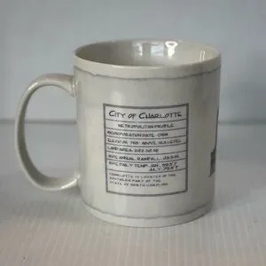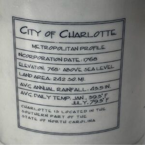 2008 Starbucks- Charlotte NC City Mug Architect design style 18oz -Ceramic Cup. Great pre-owned condition, no chips or cracks. This Starbucks mug gives a little history of Charlotte NC on the side. Measures 4x4.