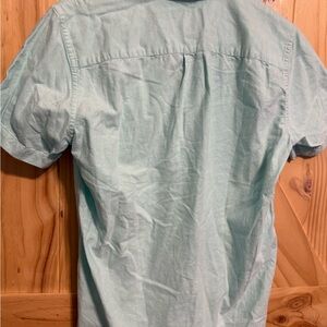 Mint green short sleeve shirt. Button-down with chest pocket. Perfect for casual wear. Excellent condition no callouts. 25 inches length. 20 inches pit to pit. 8 inch sleeves smoke free home. Pet friendly, but stored away from pets. Bundle and save!