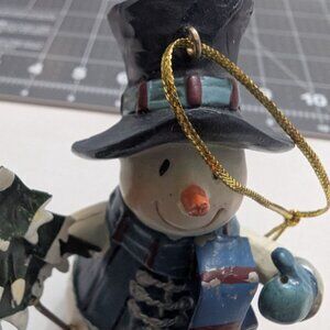 Snowman Christmas ornament Resin Wood Metal Fabric 5 inch frosted tree vtg