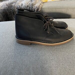 Stylish black chukka boots. Durable leather. Comfortable fit. Perfect for any occasion.