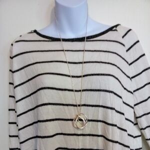 This relaxed-fit tee from Old Navy features a classic crew neckline and long sleeves, adorned with cream and black stripes for a timeless look. The ribbed texture adds a touch of sophistication, making it a versatile addition to any casual wardrobe.BUNDLE ITEM ONLY.