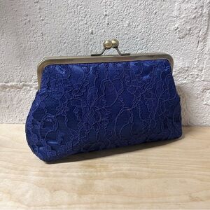 The Heartlabel Padded Bridal Clutch Royal Blue with Dark Purple Lace, Kiss-lock, NWOT, Light Gray/Silver Inner Fabric