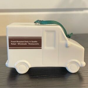 This adorable ceramic coffee delivery truck features a brown Starbucks logo. Ornament is in excellent condition (see photos). Ornament needs a good dusting/gentle wash from being in storage.