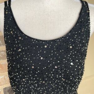 Forever Yours 100% Silk Black and Silver Beaded Column Dress