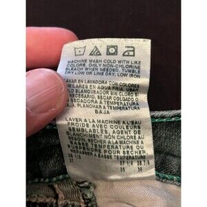 Shows typical wash wear and fading from normal use; no holes, stains, or frayed hems noticed. Embroidery and studs on back pockets appear intact with functional zipper and button.
