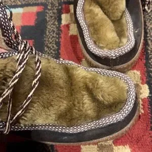 Womens size 38, made in Italy, women’s vintage Polar brand fleece moccasins. Have been used, but has life left. Please see pictures for wear. There sweat on the laces and wear on the tread as pictured.