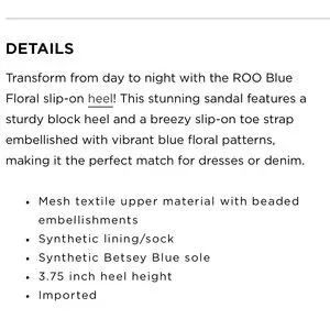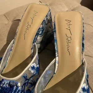 Women’s size 9.5. Chic blue block heels with floral design by Betsey Johnson. Features beaded embellishments and slip-on design. Block heels Ideal for comfort. Beautiful feminine style for brunch, bridal shower or tea time. Brand new never used no box.