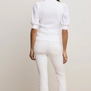 Meet the Coralee—Veronica Beard’s feminine twist on the classic henley. Crafted from premium stretch cotton, this top features elbow-length puff sleeves, a ribbed, relaxed-fit body, and a shortened five-button placket for a soft, romantic look. Versatile and easy to style, it pairs beautifully with denim, skirts, or tailored trousers.