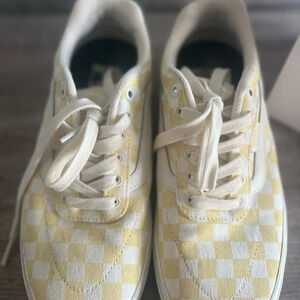 Great condition in a light yellow and white checkered pattern. The pro style so they have a little more cushion.