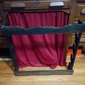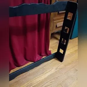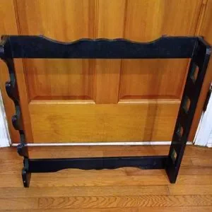Enhance your home decor with this black wall shelf/rack. Perfect for display, this shelf adds a touch of sophistication to any room. Can be used for guns, arrows, anything "long" to fit through the holes.