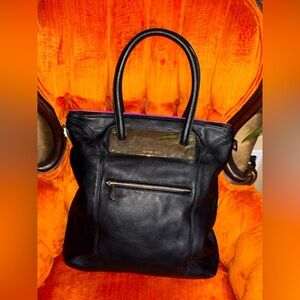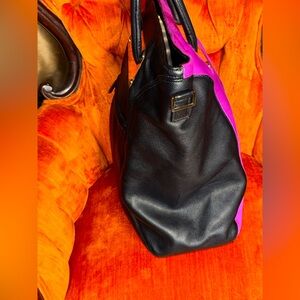 Heather Henry Color Block Fuchsia Fur & Black Pebbled Leather Tote Bag