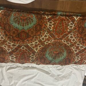 Gorgeous pair of cotton velour king size pillow shams from Pottery Barn. Rust, orange, turquoise, green & cream colors in an all over design. In mint condition.