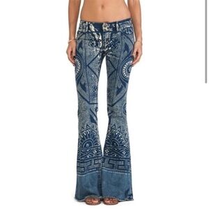 Free People Indigo Patterned Flare Jeans