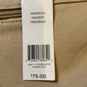 Elegant Rosetti tote in taupe. Features braided handles and multiple pockets. Ideal for daily use.