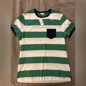 Brooks Brothers Green and White Striped Short Sleeve Tee