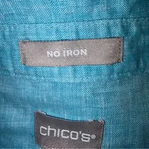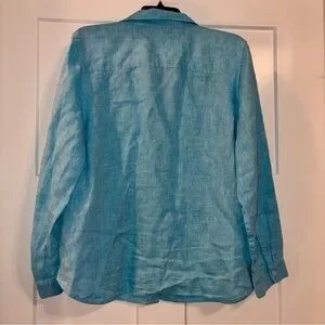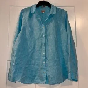 Chico’s 100% linen button down shirt Aqua Blue sz 16/18