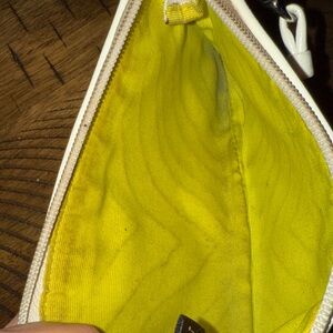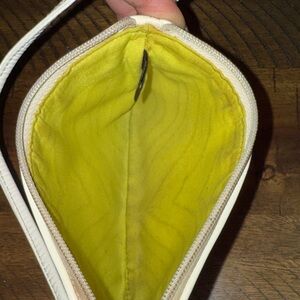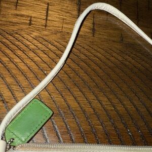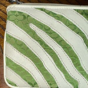 Stylish Coach green and white wristlet perfect for any occasion. Features a chic design with a convenient strap for easy carrying. Bought in 2010. The inside is the only part of this wristlet that is not in the BEST condition, but the outside of the wristlet is clean. 💚🤍👛