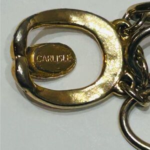 This is a surprisingly attractive, finishing piece for most necklines. It is brassy gold, a darkest silver and pebble brown alternating links. It’s 21 inches long and a triple chain. It’s an excellent condition a display unit and no imperfections or flaws.