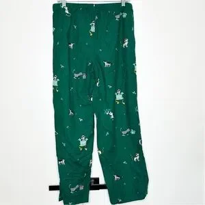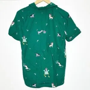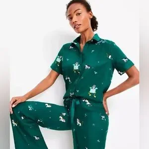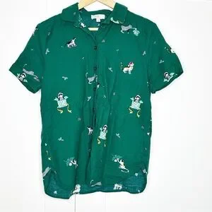 LOFT flannel kitten Cat Christmas pajamas Medium Green short sleeve pants button