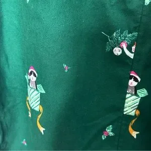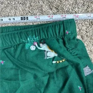 Adorable dark green pajama set from loft. Featuring cats wearing Santa hats and opening presents.