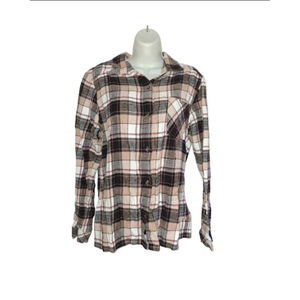RVCA Plaid Button Down Shirt Plus Size 14 Beige Black flannel